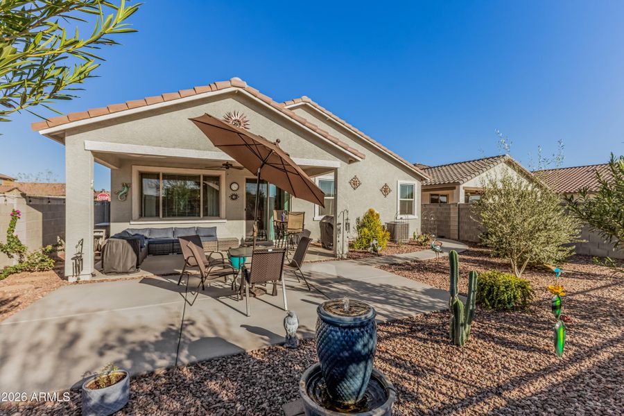 Built in 2024, this beautifully maintained home offers a modern open-concept layout in the Desert Oasis community. The kitchen features stainless steel appliances, a gas range, large island, and ample cabinetry, opening to the dining area and great room.