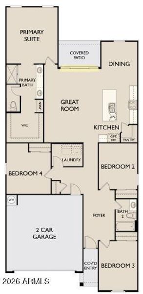 Welcome to this thoughtfully designed 4-bedroom, 2-bathroom home offering 1,797 square feet of open concept living space. The Iris features an abundance of natural light pouring in through a 4-panel sliding glass door. Contemporary design details shine throughout, including 42'' espresso shaker cabinets, biancone quartz countertops, sea salt 2x10 kitchen backsplash, and champagne bronze cabinet pulls. The home is finished with wood-look 8x36 plank tile flooring throughout and carpet in the bedrooms, combining durability with the warmth of natural wood tones. The generously sized bedrooms offer ample storage and flexibility to adapt to any lifestyle. Blending comfort, function, and timeless design, this home is the perfect canvas for modern living. This home also features a soft water loop, interior blinds, and all appliances included making it move in ready! Located in North Copper Canyon with resort-style amenities and easy access to the 303.