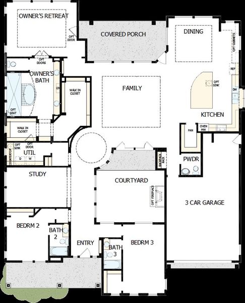 The Owner's Retreat provides a private escape with a serene Owner's Bath and dual walk in closets. Secondary bedroom suites include private baths and unique features to comfortably accommodate guests.