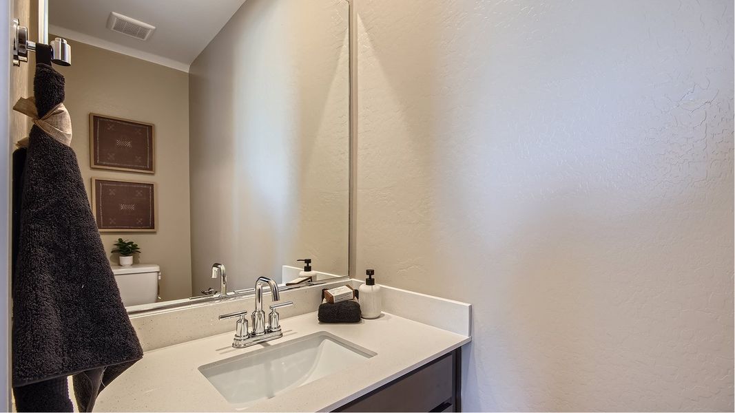The first floor of this two-story home shares an open layout between the kitchen, dining area and Great Room for easy entertaining, along with convenient access to a powder room. Upstairs are two secondary bedrooms, ideal for household members and overnight guests, as well as a luxe owner's suite, comprised of an en-suite bathroom and walk-in closet.