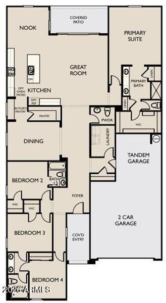 Welcome to Stonebridge Manor in Waddell, where thoughtful design meets everyday comfort. The stunning Jade floorplan offers 2,629 sq. ft. of single-story living with 4 bedrooms, a formal dining room, 3.5 bathrooms, and a spacious 3-car tandem garage. Inspired by our Roosevelt Collection, this home invites you to leave the world of constant change at your front door and embrace a style that never gets old--classic with a modern flair. Rich cabinetry, elegant Carrara Breeze quartz countertops, and a designer tile backsplash create a sophisticated Gourmet kitchen complete with GE stainless steel built-in oven and microwave and electric cooktop. Durable wood-look plank tile flooring flows through the main living areas, while plush carpeting enhances comfort in the bedrooms. 8' interior doors, 2" faux wood blinds, and a 4-panel sliding glass door open to a covered patio for seamless indoor-outdoor living. With pavers at the driveway and entry and a soft water loop, this luxurious retreat is designed to inspire memories for years to come.