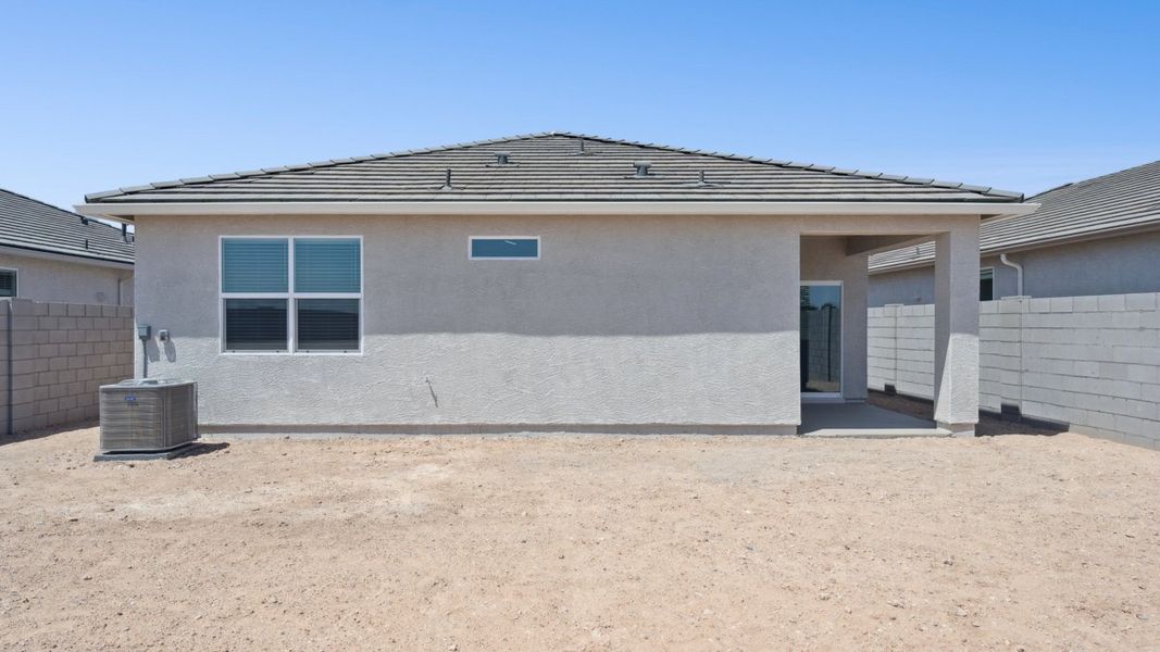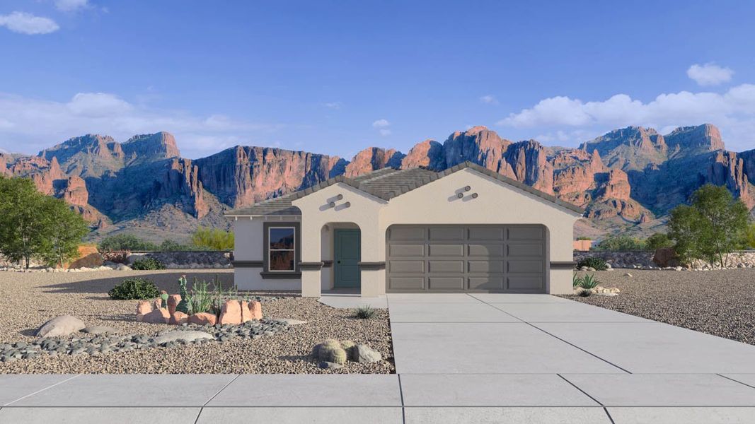 Welcome to the Abbot floor plan, a single-story home featuring 3 bedrooms, 2 bathrooms, and a 2-car garage with direct access to the home. Spanning 1,314 sq. ft., this open-concept home is perfect for entertaining guests or cozy gatherings. As you step inside, you're greeted by a foyer leading into the living area, overlooked by the kitchen. The kitchen includes modern appliances and plenty of counter space, as well as a corner pantry and a large island. The primary bedroom offers a peaceful retreat located on one side of the home. The room features a bathroom with dual sinks, as well as a walk-in closet for added storage and convenience. Two additional bedrooms provide plenty of space for household guests or a home office, with easy access to a nearby bathroom featuring a shower/tub combination. The Abbot floor plan also features a backyard space, perfect for outdoor activities or enjoying the fresh air. Located in the community of Magma Ranch Vistas.