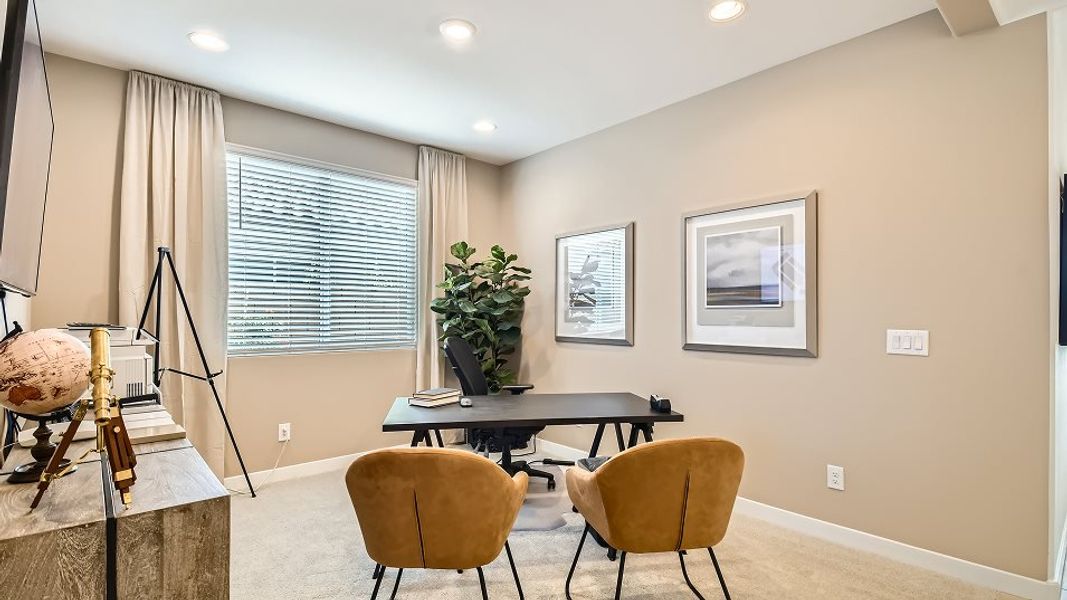 A secondary bedroom and den are secluded off the foyer in this new single-level home, leading to an open-concept floorplan shared between the kitchen, dining room and Great Room for simple transitions and multitasking. A spacious covered patio offers seamless outdoor recreation, and the luxe owner’s suite is nestled into a private back corner, offering access to an en-suite bathroom and walk-in closet.