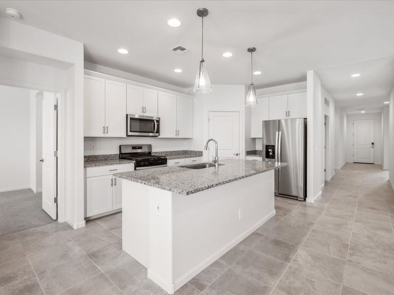 With four bedrooms, this home is great for entertaining guests, with a tucked away primary suite. Enjoy white Cabinets with white quartz countertops, rectangular light beige tile flooring and cool neutral carpet in the Finesse package.