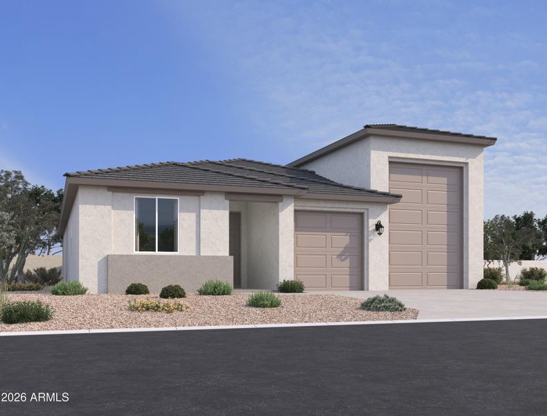 A standout feature of this home is the RV garage paired with a 2-car tandem garage, providing exceptional s for recreational vehicles, extra storage, or a workshop setup. The desert-modern exterior and inviting landscaping create wonderful curb appeal.