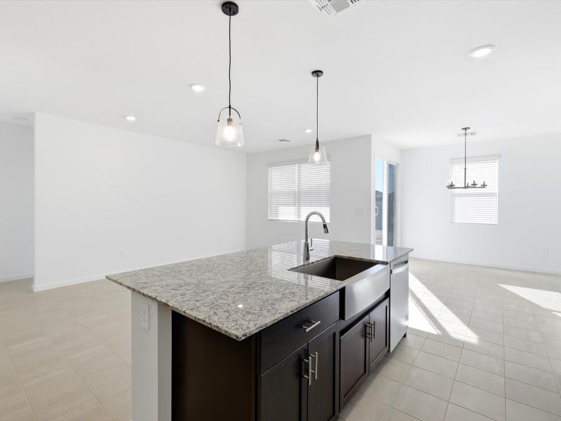 Open-concept living with three bedrooms and a covered back patio. Enjoy a private primary suite with a walk-in closet. Umber cabinets with white countertop and tile flooring in the Clarity package.