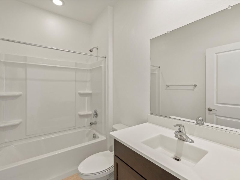The Jasper floorplan in Tucson, Arizona offers a covered patio just off the great room so you can enjoy the beautiful desert. The primary suite location provides ultimate quiet and privacy.