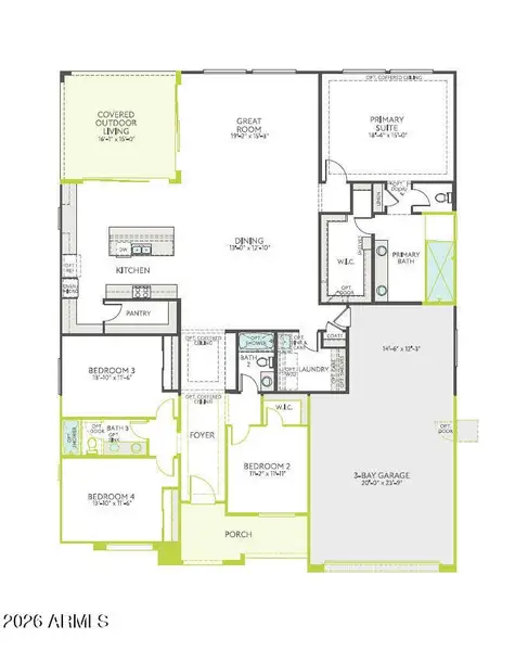 Discover elevated living in this beautifully designed Tri Pointe Homes residence offering 2,677 sq ft, 4 Bedrooms and 3 Baths, ideally located in the incredibly amenity-rich planned community Blossom Rock. The open-concept design features 12' ceilings and a 12' multi-panel sliding glass door at the Kitchen, creating a bright and seamless indoor-outdoor experience. The Executive Kitchen showcases a 36'' gas cooktop, Benton Hardwood Burlap cabinetry, waterfall-edge quartz island, custom tile backsplash and Delta Terra Quartz countertops. Enjoy a spa-inspired Primary Bath with a frameless walk-in shower. Wood-look plank tile flooring, pavered outdoor spaces, laundry sink pre-plumb and LEED certification complete this exceptional home.