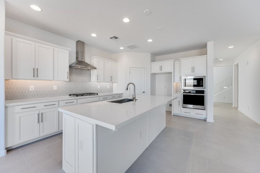 Welcome to the Wedgewood at 17629 W Solano Drive in Allen Ranches Discovery! This spacious and thoughtfully designed home offers 2,961 square feet with five bedrooms, three bathrooms, and a three car tandem garage. A charming wraparound front porch creates a warm first impression as you step inside the welcoming foyer. Just off the entry, a formal dining room anchors the space, alongside a secondary bedroom and full bathroom that are perfect for guests. The home opens into a bright kitchen, casual dining area, and great room that flow together beautifully for everyday living. Upstairs, four additional bedrooms, a versatile loft, and a primary suite with dual sinks and a generous walk in closet provide comfort and flexibility for everyone. Allen Ranches in sunny Litchfield Park, AZ offers fun and adventure with a playground, sparkling pool, basketball court, and the thoughtful design of a master‑planned community. With quick access to Loop 303, you’re just minutes from lush parks, Harkins Theatres, Barnes & Noble, and plenty more nearby conveniences. Additional Highlights Include: paver front porch, driveway, and walkway, extended outdoor living, wood look tile, 36" soft close cabinetry, GE Cafe appliances, quartz countertops, and gas line for future outdoor kitchen. Photos are for representative purposes only.