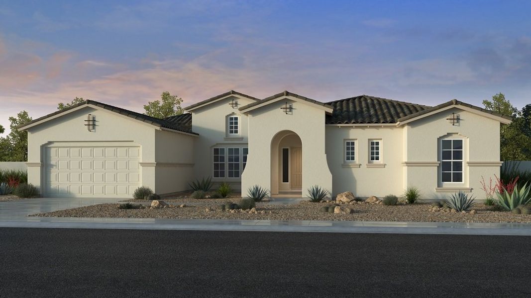 Welcome to the Telluride at 20712 East Calle De Flores in Ellsworth Ranch Capstone! This inviting single story home offers 4,020 square feet with four bedrooms, four and a half bathrooms, a multi-generational suite, a five-car garage, two dining areas, a flex room, and a spacious game room. The thoughtful layout places secondary bedrooms away from the private primary suite, creating comfort and privacy for everyone. At the heart of the home, the open gathering room, dining space, and kitchen come together for everyday living and memorable moments with family and friends. Designed for connection and ease, this home offers the space to grow, host, and truly feel at home. Enjoy resort‑style living with a clubhouse, fitness center, sparkling pool, and lighted pickleball and basketball courts just steps away. Nearby favorites like Harkins Theaters, Desert Mountain Park, San Tan Flat, and Trader Joe’s are minutes from home. Explore the community’s National Wildlife Federation–Certified Butterfly Garden and spot monarchs in a peaceful natural setting. Additional Highlights Include: 5th/6th garage, expanded walk in closet and super shower at primary suite, multi-gen suite, quartz countertops throughout, upgraded kitchen cabinets with stacked glass uppers, and wood look tile flooring, Photos are for representative purposes only.