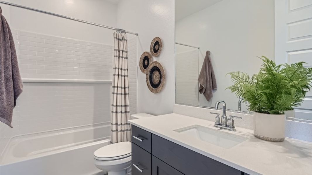The first floor of this two-story home shares an open layout between the kitchen, dining area and family room for easy entertaining, along with convenient access to a powder room. Upstairs are two secondary bedrooms, ideal for household members and overnight guests, as well as a multifunctional loft and luxe owner's suite, comprised of an en-suite bathroom and walk-in closet.
