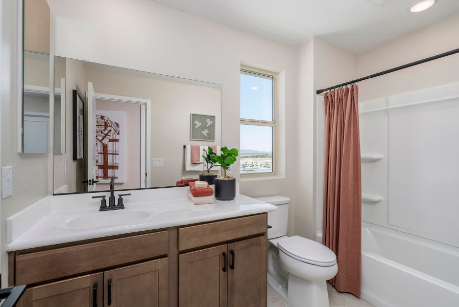 FORMER MODEL HOME with all the upgrades. Creatively designed home with open concept living. Enter the home to the living room, kitchen and dining room. Finishes include quartz countertops, 42-inch cabinets, and tile throughout the first floor. Walk in pantry, under stairs storage and first floor half bath as well. Go up the tucked away stairs to the second floor where you will find 2 guest bedrooms, guest bathroom, upstairs laundry, and loft perfect for another sitting area. The primary bedroom is split from the guest bedroom. Primary bathroom is very spacious with dual vanities, tub/shower combo and an oversized primary closest. Front of the the home faces a green belt area perfect for entertaining with a large front patio as well.