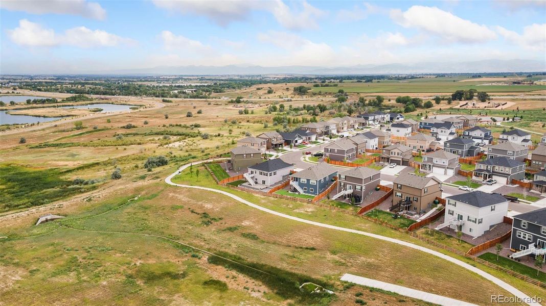 Welcome to 13628 Topaz Street, a beautifully maintained 3-bedroom, 2-bath home nestled in the desirable Lakeside Canyon neighborhood of Longmont. This 2023 build is spacious, light-filled and features an open-concept layout with stylish finishes, a modern kitchen, and a cozy living area perfect for entertaining. On the main floor, you’ll find generously sized bedrooms and a serene primary suite with a walk-in closet and en-suite bath. Downstairs you will be greeted by a full sized unfinished basement with a walkout. Step outside to your private backyard oasis—meticulously upgraded with over $30,000 in enhancements, including a deck, stunning extended patio, professional landscaping, large turf area, and a custom area ideal for a fire pit, relaxing, or gathering with friends. With its turnkey condition, prime location near parks and trails, and standout outdoor living space, this home is not to be missed