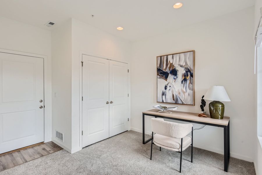 The Westfield floorplan is a thoughtfully designed three-story townhome that offers a modern layout with 2 bedrooms, 2 full bathrooms, and 2 half bathrooms. On the first floor, you'll find a versatile Flex Room measuring 13' by 9', perfect for adapting to various lifestyle needs, alongside a Covered Patio sized at 13' by 6' for outdoor relaxation. The floor also includes a spacious 2-car garage measuring 19' by 20', providing ample storage and convenient access. Moving to the second floor, this open-concept space includes a generously sized Great Room of 15' by 16' that seamlessly flows onto a Covered Deck of 13' by 6', ideal for entertaining. The Dining Room, measuring 10' by 12', and a modern kitchen are perfectly positioned for effortless mealtime gatherings. On the third floor, the private living quarters are thoughtfully arranged. The Owner's Suite is a serene retreat, measuring 12' by 12', complete with a walk-in closet and en-suite bathroom for ultimate comfort. The second bedroom, measuring 13' by 11', provides easy access to the additional full bathroom, and a convenient laundry area is also situated on this floor. Overall, the Westfield floorplan offers a well-balanced combination of style, function, and privacy, making it an excellent choice for those seeking a multi-level townhome. *Sample photos represent the floor plan, not the actual home.