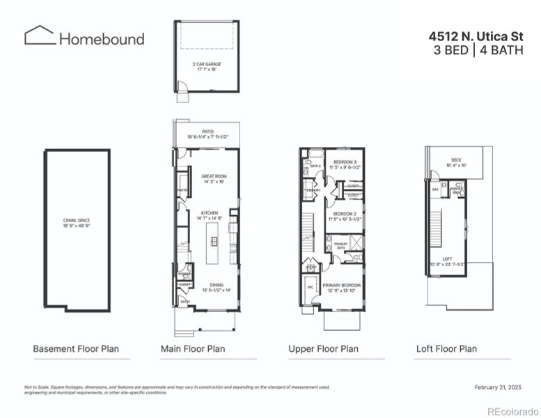 Under Construction. Built by Homebound with a April 2026 completion. Discover refined modern living in this new development duplex offering 3 bedrooms, 4 baths, and 2305 square feet of thoughtfully designed space in Denver’s desirable Berkeley neighborhood. Showcasing the Metro Elevation, the exterior blends brick and lap siding with striking storefront-style windows, creating a façade that honors Denver’s historic architectural character while embracing contemporary urban design. Inside, exceptionally curated finishes and intentional design details shape a highly functional, light-filled layout ideal for everyday living and effortless entertaining. The main living areas flow seamlessly, while the upper levels provide comfortable privacy for bedrooms and baths. A third-level bonus space with wet bar opens directly to a rooftop deck, creating the perfect setting for sunset gatherings or relaxed evenings under the city sky. Complete with a two-car garage and contemporary craftsmanship throughout, this residence delivers architectural presence, versatile living, and a sophisticated take on new construction in one of Denver’s most connected neighborhoods.