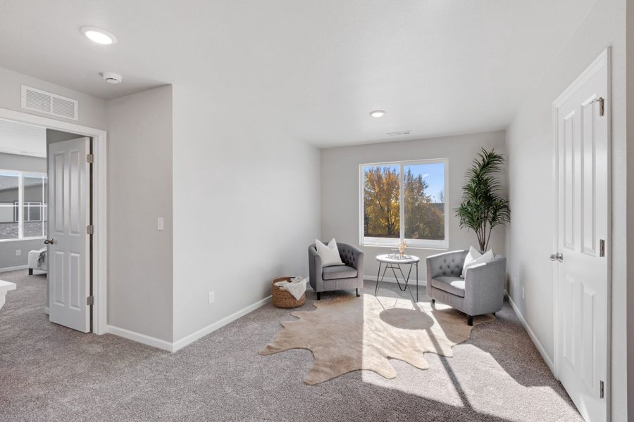 As you head up the stairs to the upper level, you’re greeted with a loft to use as any additional space you need. Get creative and turn the loft into a home office, yoga studio, homework or play area for your kids, craft area, home theater, the ideas are endless. The primary bedroom is positioned at the front of the home with a walk-in closet and a private bathroom with a double sink vanity and tiled shower. At the other end of the upper-level hallway, you’ll find a laundry room, a second full bathroom, and the second and third bedroom.