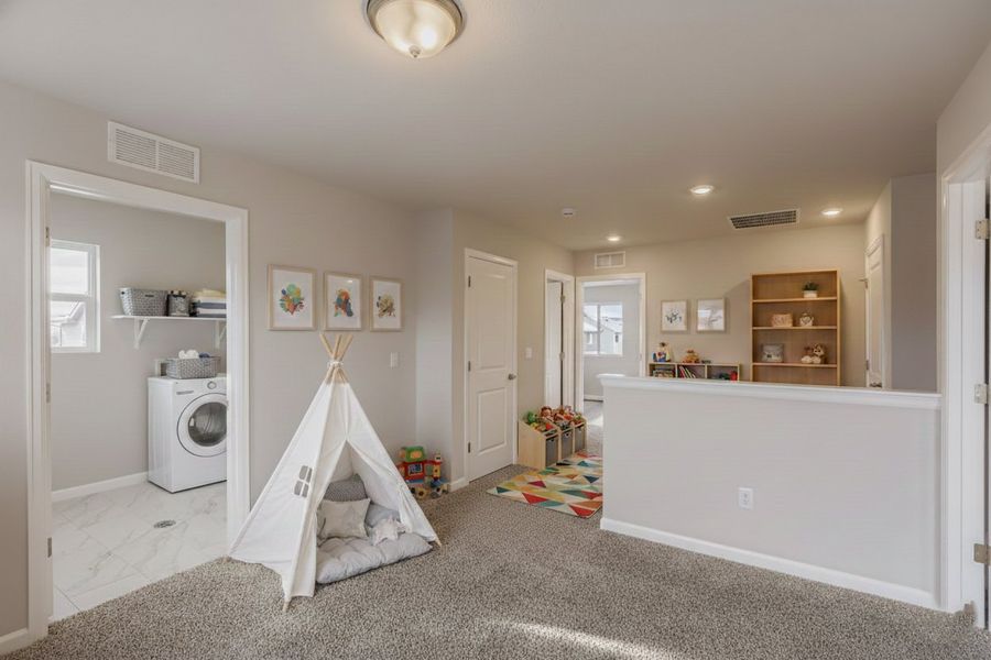 The Parmalee floorplan is a well-designed, two-story home offering 1,825 square feet of comfortable living space. Featuring three bedrooms and two and a half bathrooms, this layout balances functionality with style, perfect for a modern lifestyle. The first floor includes an inviting open-concept living area, with the great room flowing seamlessly into the dining room, ideal for entertaining. A cozy study near the entrance provides a quiet space for work or hobbies, while the two-car garage ensures convenience and ample storage. Upstairs, you’ll find the private sleeping quarters. The owner's suite is spacious, complete with a walk-in closet and a luxurious en-suite bath. Two additional bedrooms and a shared bathroom are designed with comfort in mind. A central loft area offers flexible space for relaxation or play, and a convenient laundry room completes the second-floor layout. The Parmalee floorplan is crafted to meet the needs of today’s homeowners, blending comfort, style, and functionality in every corner.