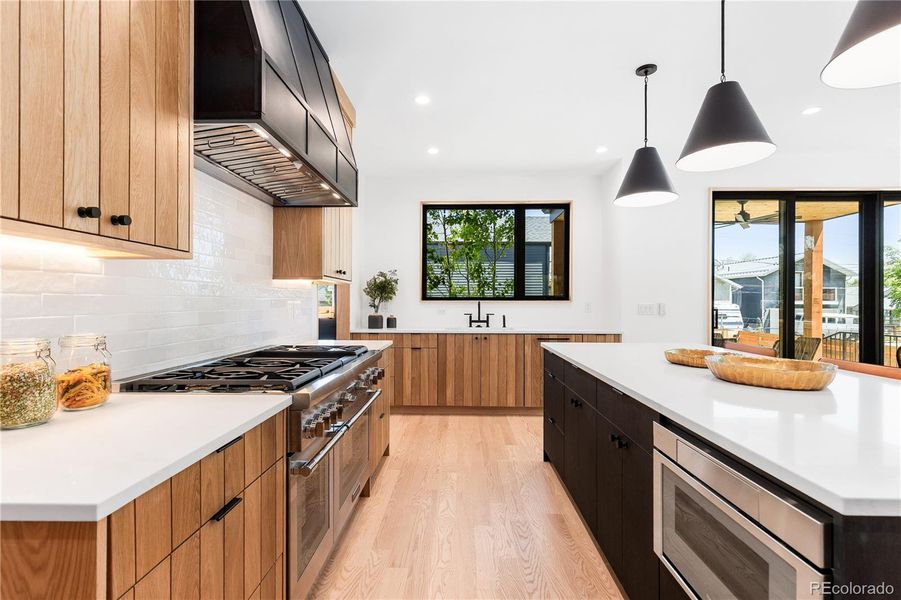 - DishwasherMicrowave OvenOvenRefrigeratorQuartz countertopKitchen IslandKitchen RangeDouble Oven