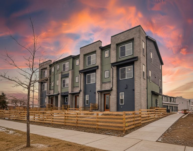 The Fossil Creek End floorplan is a stylish three-story townhome designed for modern living, featuring 2 bedrooms, 2 full bathrooms, and 2 half bathrooms. The first floor includes a convenient two-car garage and entryway, offering practical storage and easy access. Moving up to the second floor, you'll find an open-concept space that integrates a dining room and great room, ideal for gatherings and everyday relaxation, with options for a cozy fireplace. The third floor hosts the private bedroom spaces, including a primary bedroom with an en-suite bathroom and a walk-in closet, as well as a secondary bedroom, bathroom, and a convenient laundry area nearby for added ease. This floorplan is perfect for those seeking a blend of functionality and style in a compact, multi-level design. *Sample photos represent the floor plan, not the actual home.