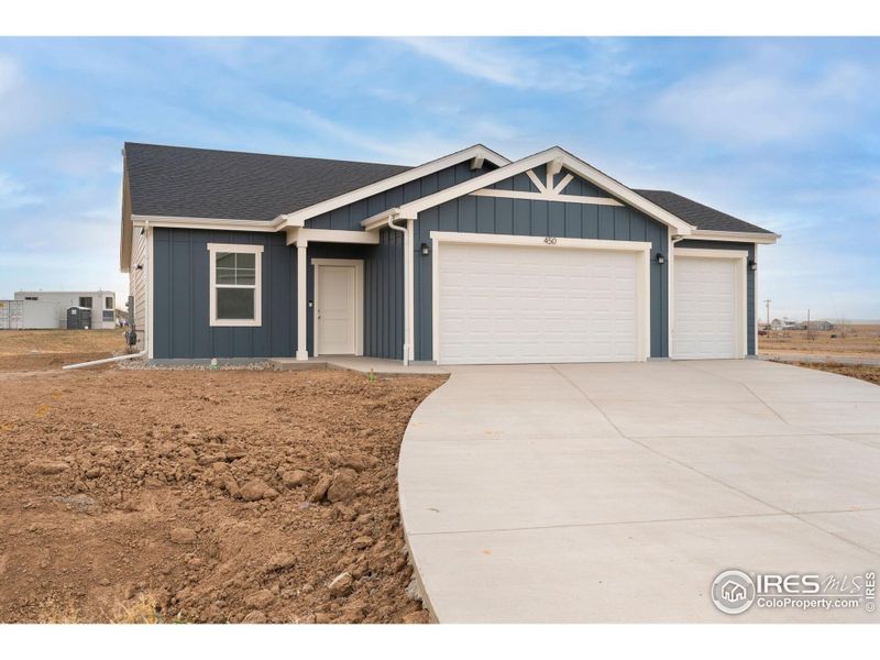 Move in ready! Wow-this one truly stands out! This open-concept ranch is thoughtfully designed and set on a spacious 1/2-acre lot in Hudson. Featuring 3 bedrooms, a versatile flex room, and a 3-car garage, the floor plan offers both function and flexibility to fit your lifestyle. Step inside to a bright, airy layout with soaring ceilings, a stylish kitchen complete with a walk-in pantry, and plenty of storage throughout. You'll love the stainless steel appliances, gas range, extended kitchen island with stone countertops, quartz surfaces, 42" upper cabinets, and luxury vinyl plank flooring in the great room. Additional highlights include LED lighting, a tankless water heater, a charming covered entry that welcomes you home, and an amazing and unobstructed view of the Rockies from the back patio. As an added bonus, enjoy a $15,000 builder concession when you use the preferred lender. Estimated completion: November 2025.Don't miss your chance to own this incredible home-designed with space, style, and smart upgrades all in one.