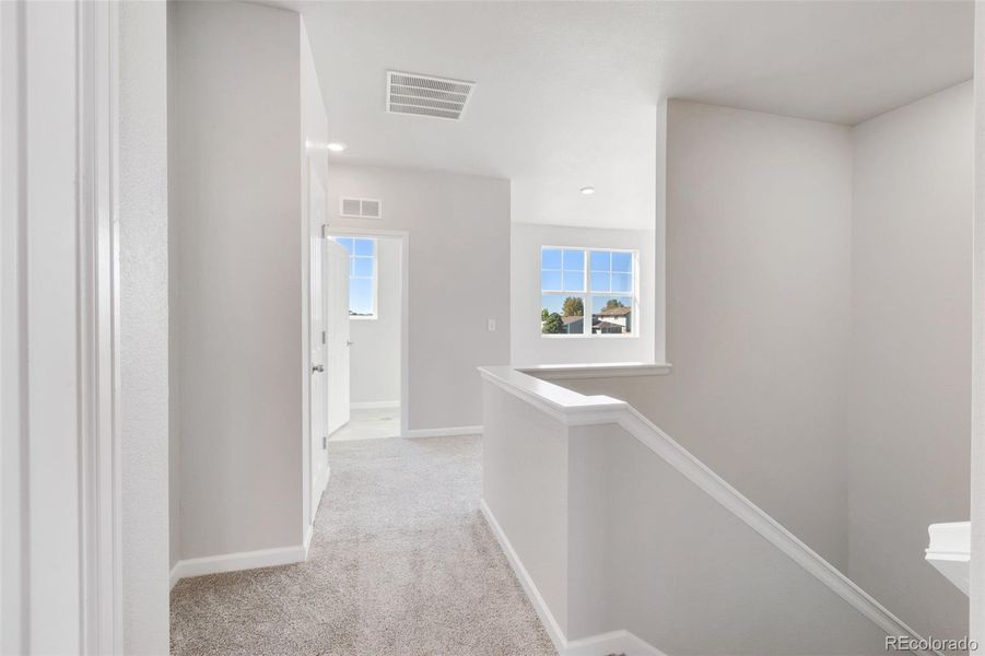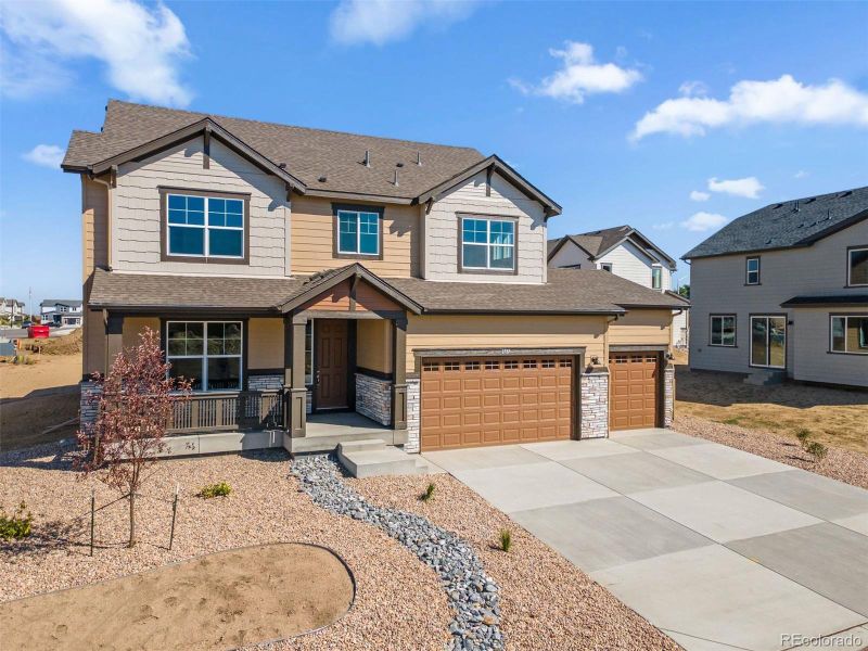 This home is eligible for a below-market fixed interest rate through Landsea Homes' preferred lender, available for a limited time. Terms and conditions apply, contact the onsite sales associate for more information! Welcome to the Gunnison floor plan. This two-story, single family home features 2,937 square footage of living space, 3 bedrooms, 3.5 bathrooms, a 3-car garage, many flex spaces throughout the house such as a study, loft, nook, and a flex room, along with a rear covered patio. As you walk up the front porch and into the entryway of the home, you’ll have the study to your right and mudroom to your left with a powder bathroom and access into the 3-car garage. At the end of the hallway from the entryway, you’ll be greeted by the open-concept main level where the kitchen, great room, and nook/dining area flow effortlessly between one another. The kitchen features and eat-at center island, a tiled backsplash, and a walk-in pantry. Just beside the nook/dining area, you’ll have a sliding glass door that takes you to the rear covered patio. This would be the ideal space to sip your morning coffee, read a book, entertain guests, or soak in the Colorado sunshine. You’ll have an additional room beside the nook to utilize as flex space. Turn this space into a fitness studio, play room or craft room for the kids, a zen den or place to relax, or a theater room. The ideas are endless! Heading up the U-shaped staircase to the second level, you’ll have a loft positioned at the front of the home along with the laundry room and third bedroom which has a private full bathroom, and walk-in closet. The primary bedroom is positioned at the back of the home with a large walk-in closet and a private bathroom featuring a dual sink vanity, tiled shower, freestanding bath tub, and a water closet. The second bedroom is also positioned at the back of the home with a bathroom connecting the second bedroom to the loft.