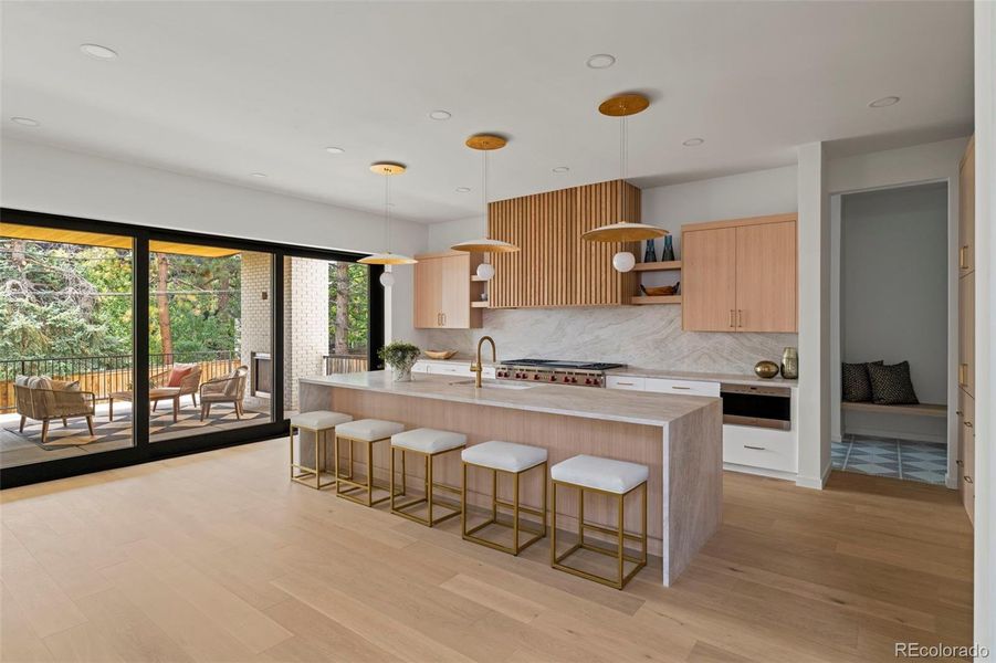 Welcome to this brand-new Hilltop masterpiece that seamlessly blends timeless design with modern luxury. Boasting exceptional curb appeal, the home welcomes you with a charming front bistro seating area, perfect for enjoying morning coffee or sunsets. Inside, discover 7 bedrooms and 7 bathrooms across three beautifully finished levels. The open-concept layout is anchored by a gourmet kitchen featuring custom cabinetry, a panel-ready Sub-Zero built-in refrigerator and freezer, a Wolf 60-inch gas range, dual dishwashers, and an oversized waterfall island. The main floor opens to the beautifully landscaped backyard with a large covered patio, fireplace, and foldable glass sliders for seamless indoor-outdoor living, ideal for year-round entertaining. Upstairs, the serene primary suite offers a spa-inspired bath with a sculptural soaking tub, waterfall countertops, and an expansive walk-in closet. The fully finished basement includes a spacious family room, a sleek wet bar with a wine cooler, a dedicated wine room, two additional bedrooms, and a non-conforming bedroom perfect for an office, gym, or flexible space. Designed with striking architecture, wide plank hardwood floors, custom lighting throughout, and elegant finishes, this home is located near Cherry Creek’s premier shopping, dining, and top-rated schools. Experience refined living in this extraordinary move-in-ready Hilltop residence.