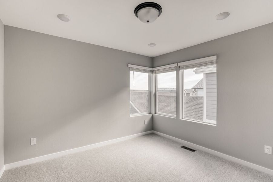 The main level features a generous bedroom with a private en suite bath—ideal as a guest suite, home office, or secondary primary bedroom. The open-concept living space is filled with natural light and flows effortlessly, creating an inviting setting for everyday living and entertaining. Upstairs, retreat to the stunning primary suite with vaulted ceilings, complemented by two additional bedrooms, a full bathroom, and a conveniently located laundry room.