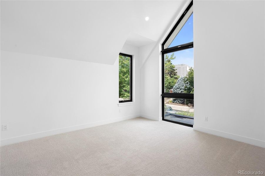 Nestled on a quiet street in sought-after Cory-Merrill, this newly completed 5-bedroom, 5-bath residence offers a refined blend of modern architectural lines and Scandinavian detail built with PBG craftsmanship. Blocks from Belcaro and walkable to Colorado Boulevard’s shops and restaurants, quick access to Washington Park (6 minutes), Cherry Creek (9 minutes), and the boutique districts of South Gaylord and Bonnie Brae. The distinctive exterior combines cement board and warm wood siding, accented by dramatic front gables and smooth stucco elevations for clean, contemporary curb appeal. Inside, soaring 10’ ceilings and white oak floors anchor an open-concept layout. Living and dining areas feature custom gas fireplaces, while archways lined with Porcelonasa tile add character. The chef’s kitchen is outfitted with a Thermador/Frigidaire appliance suite, oversized quartzite island, floor-to-ceiling American-made cabinetry, and a walk-in pantry for optimal storage. The main floor also includes a private home office, formal dining wrapped in Andersen Fibrex floor-to-ceiling windows, and a powder bath with floating quartzite vanity and custom sink. A Bonelli multislide door opens the living space to the landscaped backyard for seamless indoor-outdoor living. Upstairs, a custom monorail staircase leads to the primary suite retreat with vaulted ceilings, gas fireplace, walk-in closet, and a French balcony overlooking the backyard. The spa-inspired primary bath features radiant heated floors, a freestanding soaking tub with garden views, and a double shower with dual heads. Two additional vaulted en-suite bedrooms and a laundry room complete the upper level. Finished basement offers 10’ ceilings, a large family room with custom wet bar, two more bedrooms, a shared bath, and generous storage. Mudroom with built-in dog wash and garage with a 220V outlet included. PBG provides industry leading 2-year builder’s warranty and an 8-year structural warranty for added peace of mind.