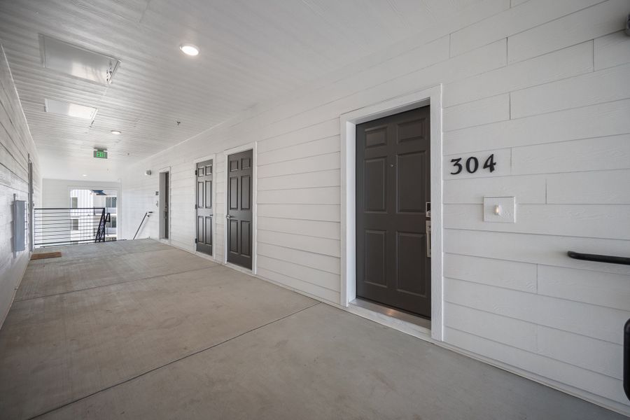 With two spacious bedrooms, two full baths, and a bright, open-concept layout, this home lives larger than its square footage. The kitchen includes a generous island with seating, Samsung® appliances, and ample cabinet space, opening into a light-filled great room that leads to your own private balcony. From here, enjoy unobstructed views and extra privacy with no direct neighbors behind.
