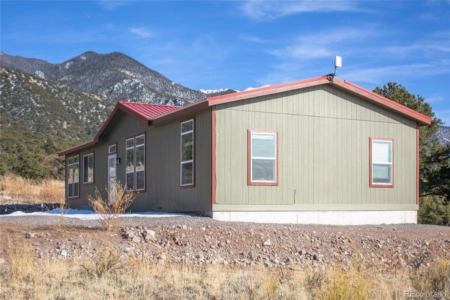Motivated Seller! Spacious, light filled new construction on 1.16 acres in Chalet I of the Baca Grande Subdivision. Situated perfectly on the lot to maximize the views of the Sangre De Cristo mountains and passive solar gain with oversized near floor-to-ceiling windows, as well as a back patio overlooking the sweeping San Luis valley views via an extensive greenbelt. The open concept home is well designed, entering into a large living room with recessed and modern chandelier lighting the space. Flowing off of the living room, the chef's kitchen opens up with a large central island, and abundant cabinets with stainless steel appliances. The dining room's huge windows provide perfect lighting all day long, without the need for overhead lights. The large primary bedroom's windows display the patio beyond, a huge (10'11" x 4") walk in closet and a luxury bathroom attached, including a large soaking tub (also with great views) and stand alone shower. The two additional bedrooms each have sizable closets and views of the valley through spacious windows, and share a 3/4 bathroom with an extra-large walk in shower. The large laundry room/mud room serves as a second entrance taking you out to the back patio and the walkway to the detached storage shed. Exceptionally well built 2 x 6 constructed home with a raised insulated crawl space, R50 insulation in the ceiling, R28 in the floors, and R19 in the walls, and climate controlled with a smart thermostat. A rare combination of pristine construction, location, and size, check out the Matterport virtual tour to see this space from every interior angle! Ten minutes from the town of Crestone for gas, groceries, an all ages charter school, shops, and a few more minutes to world class hiking, fishing, and hot springs. Come find your bliss in Crestone!
