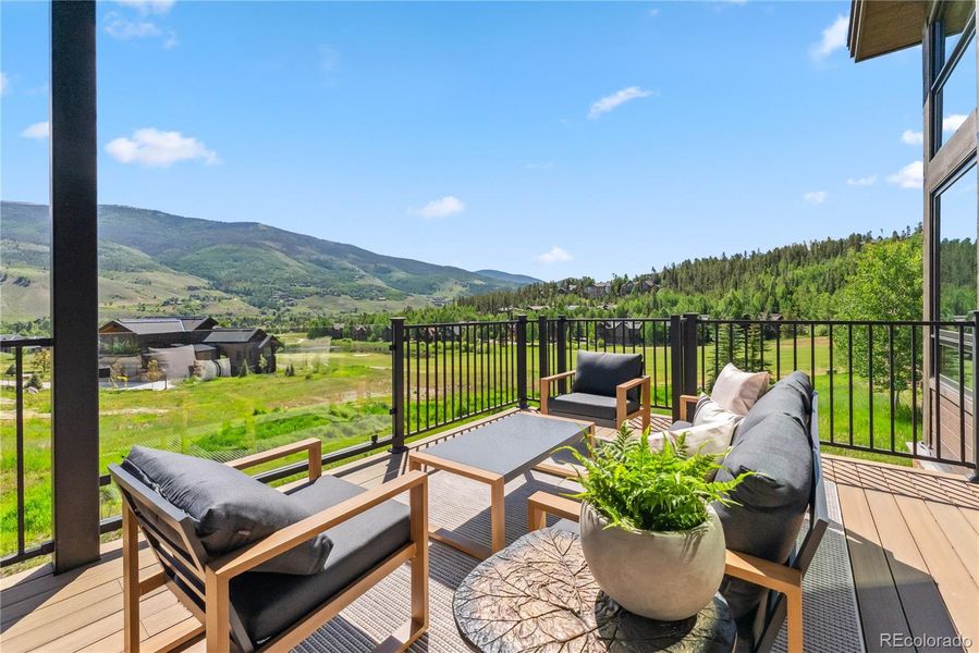 Tucked at the end of a private quiet cul-de-sac overlooking hole 9 on the Raven Golf Course, this meticulously crafted new-construction mountain modern home highlights stunning views and refined finishes throughout. Custom built and professionally designed and staged to perfection, this home delivers a rare blend of style, comfort, and elevated mountain living. The main level features a thoughtful open-concept great room that seamlessly connects to a private primary suite with spa like finishes and direct deck access. The kitchen includes Monogram appliances, quartz countertops, custom cabinetry, with a spacious island ideal for gathering. Downstairs, find a spacious entertainment lounge with a full bar, a secondary suite, and two additional bedrooms. The lower level extends to an outdoor lounge area with a standing gas fire pit that invites you to take in the mountain sunrises and alpenglow evenings overlooking the Raven Golf Course. Thoughtful touches include radiant in-floor heat, vaulted ceilings, and a stunning double-sided fireplace that anchors the outdoor living spaces. Just a short walk to the Raven Golf Club—one of Colorado's premier mountain courses—offering championship-level play with forested fairways, rolling terrain, and dramatic elevation changes. This is your chance to experience elevated mountain living with views, space, and luxury at every turn. Experience the views, the layout, and the lifestyle—schedule your showing before it’s gone.