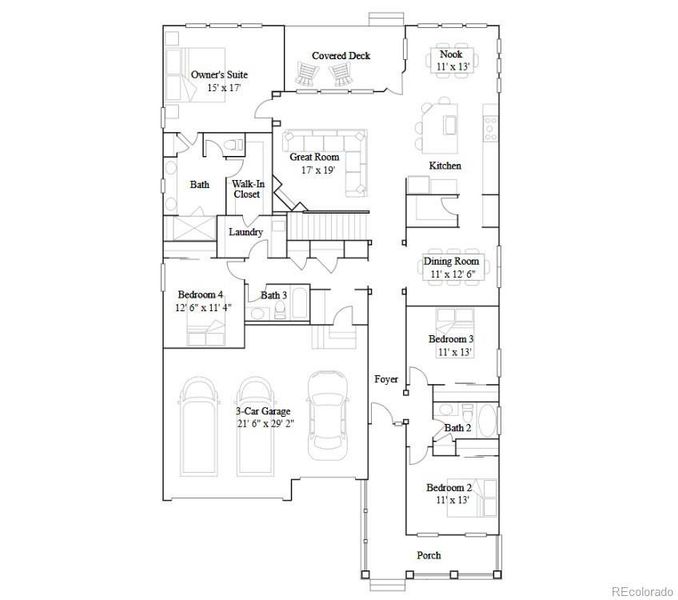 Available NOW! Guilford Estates is a new community with only 28 homesites. Thoughtfully designed with 2,527 square feet of modern living space and an impressive 3-car garage, this home welcomes you with 9' ceilings and wide plank vinyl flooring throughout the main living areas. At its heart, an open-concept Great Room connects seamlessly with the striking kitchen—showcasing a quartz-topped island and stainless steel appliances. Entertain easily in the formal dining room or on the covered deck. Retreat to the private owner’s suite, complete with a spacious walk-in closet, dual sinks, quartz countertops and a walk-in shower. Secondary bedrooms thoughtfully positioned off the foyer offer flexibility for guests or office space while an additional bedroom down a private hall adds even more versatility. Energy efficiency shines with dual-glazed windows, LED lighting and advanced insulation. Experience Colorado living at its finest in a desirable community conveniently located near dining, shopping, entertainment, and everyday amenities. Includes a Washer & Dryer and Whole House Blinds!