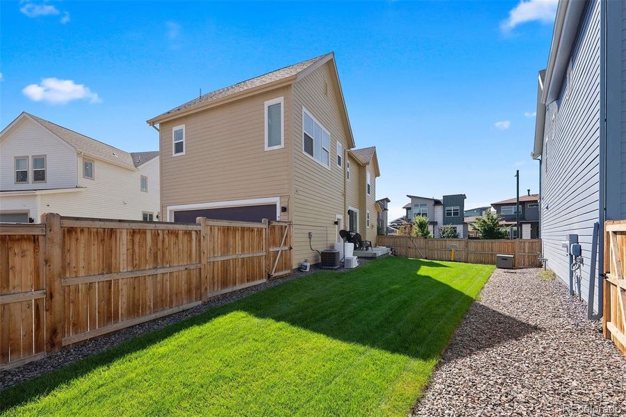 Welcome to this beautiful 4-bedroom, 4-bath Central Park home featuring an open-concept design filled with natural light. The main floor offers a bright living room with a cozy gas fireplace and access to the backyard & patio—perfect for soaking up the Colorado sunshine. A spacious dining area flows into the gourmet kitchen, complete with quartz countertops, stainless steel appliances, and a custom pantry that's not to be missed. Sleek black metal railings & fixtures add a modern touch throughout.