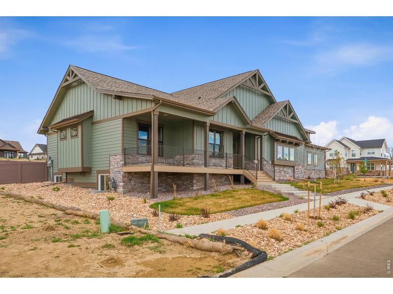 This Fricke custom ranch sits on a quarter-acre corner lot with sweeping views and was built for the way Coloradans actually live - main level living, an oversized 4-car side-load garage ready for bikes, skis, kayaks, and everything else, and a fully fenced, professionally landscaped yard that's move-in ready from day one. Step inside and the great room immediately feels like home - soaring beamed ceilings, a double-sided gas fireplace that opens to the covered patio, and sight lines that make the space feel expansive. The gourmet kitchen is built to entertain: a large center island, double ovens, five-burner gas cooktop, quartz countertops, full tile backsplash, and custom cabinetry with soft-close doors and a hidden walk-in pantry. The wraparound front deck and covered back patio with fireplace make outdoor living a four-season affair here. The primary suite is tucked away for true privacy - a five-piece bath with soaking tub, double vanity, and walk-in shower, plus a walk-in closet with direct access to the laundry/mudroom connecting straight to the garage. Two additional bedrooms complete the main level. Downstairs, the finished basement gives you room to spread out: a large rec room, wet bar with oversized island, two more bedrooms, a full bath, a powder room, and generous unfinished storage for gear. A tankless water heater and active radon mitigation system round out the thoughtful infrastructure.Harvest isn't just a neighborhood - it's a rare find. No metro district means a lower tax bill. Set in Berthoud, you're minutes from downtown's local shops and restaurants, 5 minutes from TPC Colorado's world-class golf, and perfectly positioned between Denver, Boulder, and Fort Collins for wherever life takes you. Denver International Airport is just 45 minutes away, making travel effortless. Truly a must see opportunity!