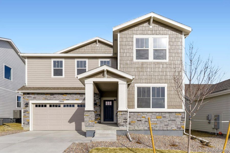 Brand new MOVE-IN READY home in the sought-after Looking Glass community in Parker, CO! This spacious 5 bedroom, 3 bath home perfectly blends comfort and thoughtfully designed living space, featuring a main-level bedroom with a full bath—perfect for guests or multigenerational living. The main level features an open-concept living area centered around a cozy fireplace and a stunning kitchen with upgrades throughout. Highlights include a large island, 42" maple smoke cabinetry, quartz countertops, and top-of-the-line KitchenAid stainless steel appliances—including a 5-burner gas range. Upstairs, enjoy a versatile loft space—perfect for a playroom or second living area—along with 4 generously sized bedrooms. The private primary suite features a spacious walk-in closet and a bright, modern bathroom with dual vanities and a walk-in shower. A full, unfinished basement provides endless potential—expand your living space or design a home gym, theater, or workshop. Located in a vibrant community, Looking Glass offers amenities for everyone to enjoy, while nearby Parker provides shopping, dining, trails, and top-rated schools. Don’t miss this opportunity to make this incredible home yours! Schedule a showing today!