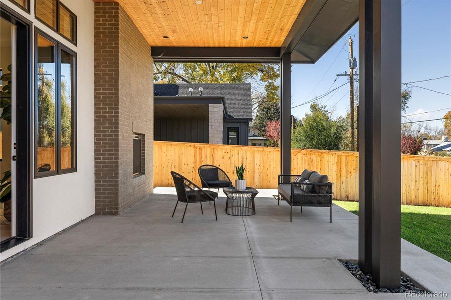 New Build overlooking Eisenhower Park! Architectural detail, high-end finishes, soaring ceilings, upgraded lighting package, and so much more available! A beautiful, curved brick wall welcomes you as you approach the entrance. Incredible natural light illuminates the home from its entry with a brick accent wall to the front living room overlooking the lush greenery of Eisenhower Park. An open - gourmet kitchen is large with 2 seating areas and a dining area with sliding doors to an outdoor terrace - perfect for outdoor dining and entertaining. A sunken den offers up an ideal space for tv watching warmed by a cozy fireplace. A main floor suite, home office or future pool changing room cap off this impressive first floor. Upstairs the 3 bedrooms create serene spaces including an ultra-luxurious primary suite gazing upon sweeping park views. The second-floor roof deck is structurally sound for a future hot tub. The finished basement's rec room and wet bar, plus gym and additional bedroom complete a spectacular new build home ready for its owners. The home is prewired for audio, home automation and security. The sprawling yard is large with endless possibility + a grand outdoor covered terrace with a fireplace. Amazing location and 100 yards to the Highline canal trail. A builder's warranty creates additional comfort and ease. A true must see in an ideal location.
