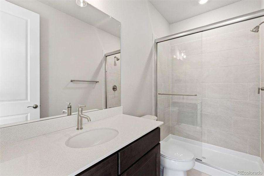 The chef's kitchen is thoughtfully designed for both elevated entertaining and everyday living, featuring a sleek cooktop with statement hood, abundant cabinetry, generous prep space, and seamless flow into the dining area and great room. Whether hosting holidays or enjoying a quiet evening at home, this layout delivers effortless function and style. Extend your living outdoors to the covered patio — ideal for year-round Colorado enjoyment.