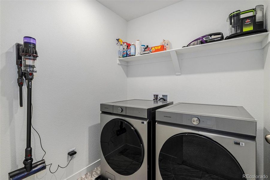 Upstairs, the owner’s suite is thoughtfully sized with dual sinks and a walk-in closet; blackout cellular shades in all bedrooms (and the suite’s bath) support restful nights. Practical upgrades are already in place: ceiling-fan pre-wire in every bedroom and the Great Room, a Samsung Bespoke washer and dryer, and an extra ¼-stall in the garage for gear or a small workspace.