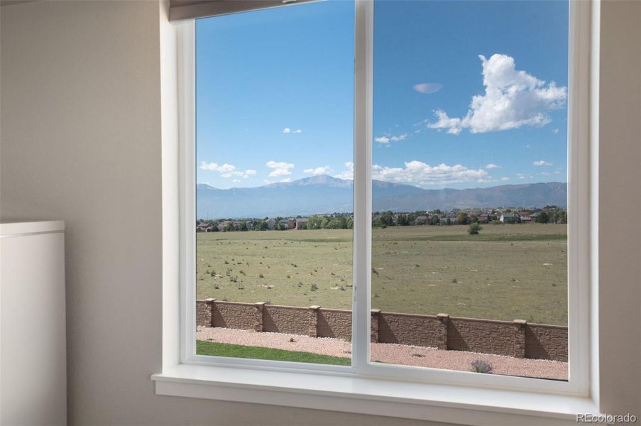 Breathtaking mountain views & a setting that backs to open space make this home truly one of a kind. From the moment you arrive, the scenery takes center stage & continues to impress throughout the entire property. Nestled on a large, newly landscaped lot with added fencing & mesh, this residence combines modern design with thoughtful upgrades, creating a home that is as functional as it is beautiful. Soaring ceilings & expansive windows highlight the views while filling the home with natural light & a dramatic floor-to-ceiling fireplace anchored by elegant chandeliers sets the tone in the great room. The gourmet kitchen is designed for everyday living, featuring quartz countertops, upgraded cabinetry, a walk-in pantry, custom backsplash, modern faucet, & a spacious island that flows seamlessly into the dining & living areas. A versatile front room adds flexibility, whether used as a formal dining space or a cozy sitting area, while the main-level office provides the privacy needed for work or study. Upstairs, the primary suite serves as a relaxing retreat with stunning mountain vistas, a spa-inspired bathroom enhanced by smart mirrors, & a generous walk-in closet. Secondary bedrooms are equally spacious & bright, complemented by well-appointed bathrooms, & an upper-level catwalk enhances the architectural appeal while overlooking the living area below. The unfinished basement presents endless possibilities for future expansion, from a home theater to a fitness room or additional living space. Outdoor living is just as impressive, with a large deck perfectly positioned to capture Colorado’s sunsets & mountain views, while the beautifully landscaped backyard is designed for both recreation & relaxation, making it a space to enjoy year-round. Additional upgrades include window well covers, a suite of blinds with motorized options, security cameras with a doorbell camera, & insulated garage walls with utility racks & a slate wall system for added organization.