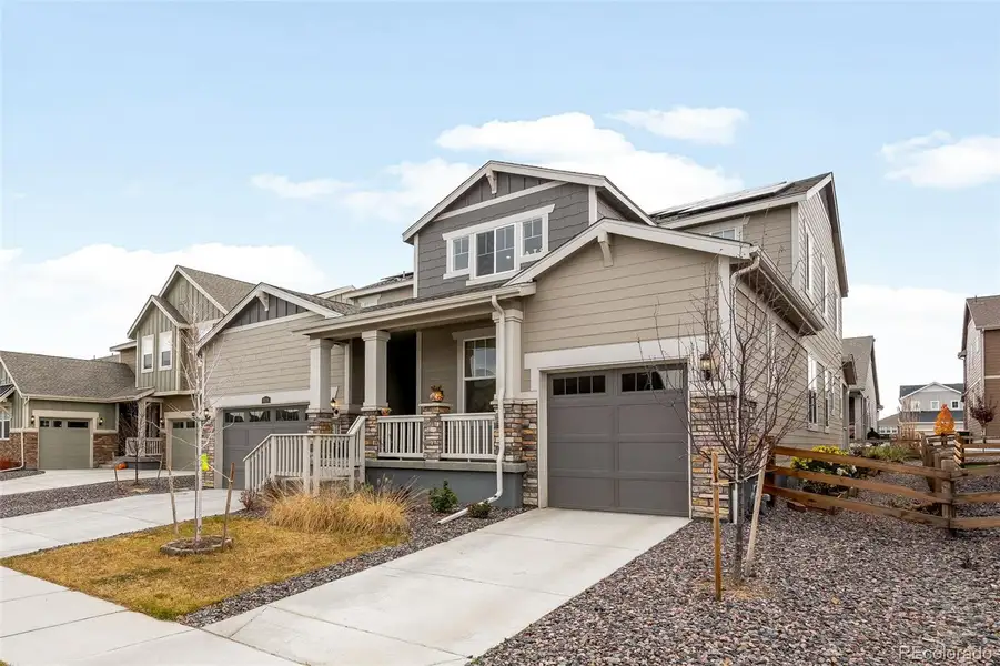 This spacious, two-story NextGen® home features a convenient private suite with a separate entrance, living room, kitchenette, bedroom, bathroom and one-bay garage! Move-In ready with the Landscaping professionally completed and window coverings installed! In the main home, a generous open floorplan is shared between the Great Room, gourmet kitchen and dining on the first level, while a loft and four bedrooms occupy the second floor. Inside, you'll find a bright, open floorplan featuring the gourmet kitchen which is a chef's dream with a large quartz island, gas range, full tile backsplash, and a walk-in pantry. The upper level boasts a luxurious primary suite with spa-like bath and walk-in closet, with an additional flex space attached to the bedroom. Three additional bedrooms upstairs. Off the main level leads to a covered deck overlooking a beautifully landscaped backyard, complete with stamped concrete patio, raised garden beds, and turf yard. Unfinished basement ready for your touch! Enjoy the neighborhood amenities; playground park, greenbelt, walking paths, and a beautiful pool. All of this plus quick access to Longmont, Boulder, Denver, and I-25. This is spacious, upgraded living without the Boulder County price tag-move-in ready with every detail done!