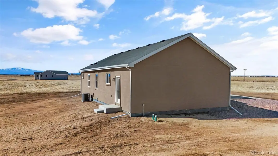 Experience True Colorado Ranch Living with Breathtaking Pikes Peak Views. This is the dream home you’ve been waiting for! Set on 35 acres of horse-ready land in peaceful Calhan, this newly constructed Harmony ranch plan delivers wide-open space, panoramic mountain views, and modern comfort built to last. Step inside to 1,680 thoughtfully designed square feet featuring 9-foot ceilings and a bright open-concept layout that seamlessly connects the living room, kitchen, and dining area — ideal for entertaining, everyday living, and taking in those incredible Colorado sunsets. The heart of the home is the spacious kitchen, complete with granite countertops, a large island, stainless steel GE appliances, soft-close cabinetry, and a large pantry. Durable luxury vinyl flooring flows through the dining and kitchen areas, while plush carpet adds comfort in the bedrooms and living space. The private primary suite is a true retreat, offering a luxurious five-piece bath with a spa-like soaking tub, separate walk-in shower, dual granite vanities, and plenty of space to unwind. Two additional bedrooms and a full bath provide room for family, guests, or a home office. A dedicated mudroom/laundry room adds everyday functionality. This fully electric, energy-efficient home includes central A/C, a 200-amp panel, and modern systems designed to help lower utility costs while keeping you comfortable year-round. Outside, the lifestyle really shines. The 3-car garage offers plenty of space for vehicles, storage, or hobbies. The xeriscaped front yard and classic stucco exterior provide timeless curb appeal, while the expansive acreage gives you endless opportunities — bring your horses, animals, toys, and big Colorado dreams. Enjoy the serenity of country living with convenience close by — just 20 minutes to Falcon and 25 minutes to Peterson Space Force Base. Modern comfort-Unmatched views-This is Colorado living at its finest!