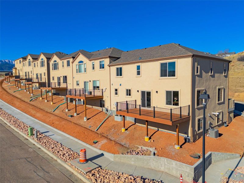 Welcome to your new luxury townhome on the western outskirts of Colorado Springs. Positioned amidst the region’s celebrated hiking trails, these townhomes are conveniently situated near Garden of the Gods and provide easy access to Interstate 25 for your daily commute. Each townhome is meticulously designed with an expansive floor plan spanning between 2,500 to 2,900 square feet. Finished basements and high-end finishes characterize the interior, complemented by quartz countertops in the kitchen and bathrooms. Each bedroom is furnished with a private full bathroom and a walk-in closet. Additionally, a two-car attached garage is provided, equipped with an electric car charging station. The south-facing patio offers breathtaking panoramic views of the surrounding mountains.