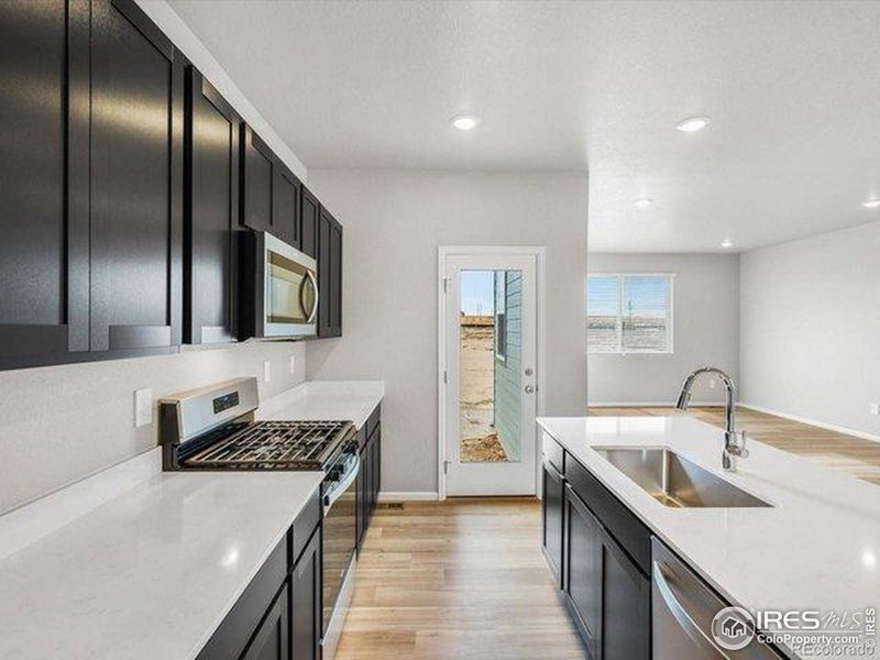 This beautiful brand new Meritage home is Move in Ready with a tremendous incentive package for qualified Buyers working with the preferred lender. The Cottonwood is a stylish two-story home featuring an open-concept kitchen with beautiful dark espresso cabinets, quartz counters and single bowl undermounted sink and spacious great room. With three bedrooms, 2.5 baths, an upstairs laundry, and a two-bay garage, this 1,786 sq. ft. design offers comfort and flexibility. The Meritage Home difference includes spray-foam insulation, advanced air filtration for year-round comfort and healthier air, and durable cementitious siding known for its strength, fire-resistance, and long-lasting performance. A Whirlpool stainless steel kitchen appliance package, washer & dryer, and full home blinds are also included for move-in convenience. Welcome home where every detail is built for comfort, efficiency, and LIFE . BUILT. BETTER. Lake Bluff in Greeley offers a serene lake, scenic trails, and a neighborhood park for outdoor enjoyment. With natural beauty and thoughtful amenities, this community blends comfort with a connection to nature.
