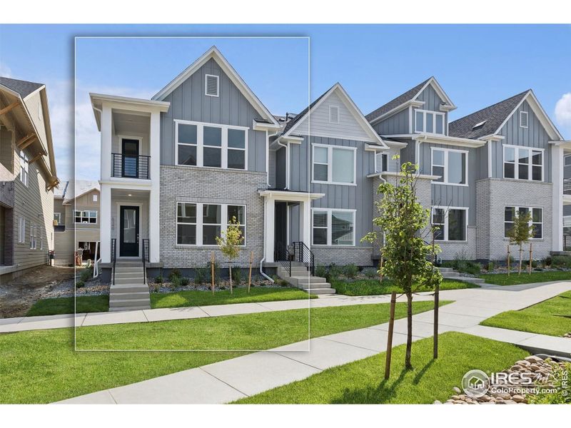 Experience contemporary comfort and style in Loveland, Colorado, with David Weekley's Trackman floorplan. This spacious 3-bedroom end unit townhome includes 2 bedrooms and a full bathroom with access to the attached 2 car garage on the main level. The second floor features a beautifully upgraded kitchen with quartz countertops, large center island, pantry and stainless stell gas appliances. The kitchen overlooks the dining room and spacious great room. Enjoy relaxing on your balcony accessed from the dining room. The private owners suite located on the second level features a spa like bath, dual vanity and a large walk in closet.Conveniently situated near the HUB in Loveland, enjoy quick access to local amenities and major thoroughfares, making daily errands and commuting a breeze. Discover the Trackman floorplan and elevate your living experience with David Weekley Homes. Schedule your visit today and envision life in this vibrant community.