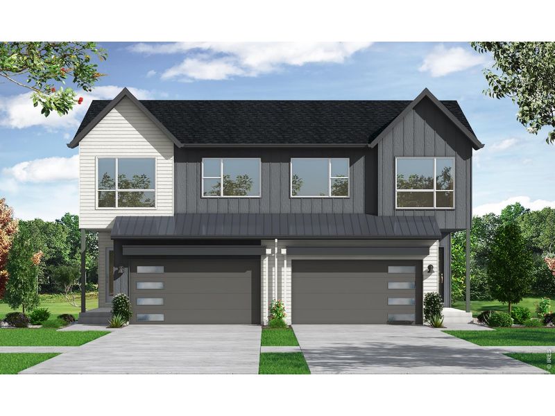 Enjoy the style and comfort of a single-family home with the ease of low-maintenance living in this west-facing, 2-story modern farmhouse duplex on a premium lot. Abundant windows, wide-plank flooring, a gas fireplace, and an open floor plan create bright, cheerful living spaces. The kitchen includes Whirlpool stainless appliances, a pantry cabinet, trash/recycle rollout, quartz countertops, a Blanco single-bowl undermount sink, and a versatile island. Durable luxury vinyl flooring spans the entire main level. Enjoy the west facing deck with covered trellis off the living/dining area and the west-facing balcony off the primary bedroom, overlooking the fenced backyard. The primary suite features a walk-in closet and a spacious bath with a dual-sink quartz vanity, poured shower pan, Euro-glass shower enclosure, freestanding tub, and private water closet. Opt to finish the basement with a rec room, full bathroom, and bedroom for more space or leave for storage.