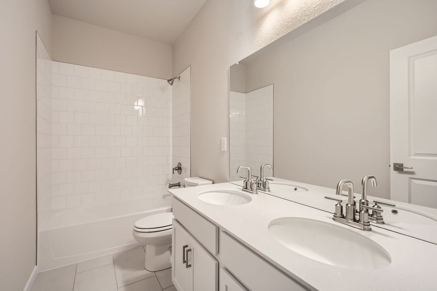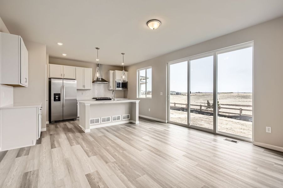 The Sierra two-story floor plan is designed for spacious living, offering four bedrooms, a convenient lower-level den, and an upper-floor loft. The open main floor layout is perfect for entertaining, seamlessly connecting the living, dining, and kitchen areas. Upstairs, the loft provides additional versatile space, ideal for a play area or lounge, while the well-placed bedrooms offer comfort and privacy. *Sample photos represent the floor plans, not the actual homes.