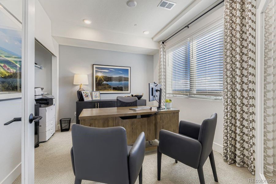 Who doesn’t love a good surprise? Luckily, this floorplan is bursting with them. It’s got a surprising amount of private, outdoor space for a start. More than enough for actually doing Sun Salutations in the sun. Or serving dinner outside, for a change. Inside, a first-floor studio can be transformed into whatever you’d like. (A bedroom for the dog would be truly unexpected.) On the second floor, separate-yet-seamless dining, kitchen and living room spaces are practically begging for a party. A surprise party, perhaps. And the wonders don’t stop there. On the third floor you’ll find a splendid owner’s retreat plus two more two bedrooms, and an extra-convenient laundry room. But that should come as no surprise.