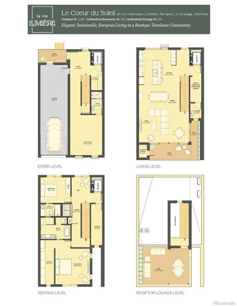 Taking reservations! La Vie Lumiere, born from the belief that a home should illuminate how you live, feel and connect each day. Le Coeur du Soleil Bathed in natural light, this townhome offers an exceptional floor plan tailored for seamless indoor-outdoor living! Generous 15 X 20 SQFT private Rooftop Deck + Private convenient Elevator, attached 2 Car Tandem Garage! Oversized entertainer's kitchen, Full Wrap Around Deck off the Living Level, outdoor living spaces that nurture wellness, connection + a more intentional way of living. An abundance of flex-space on the main level allowing for a spacious Bedroom suite & 3/4 bathroom. 2,867 finished SQFT, 2 Bedrooms + (can convert the flex-level into a 3rd Bedroom) office + 4 Bathrooms & a private unfinished Basement! 5 Piece Primary Bath + walk in closet. Modeled after the award-winning legacy of L'Avenir (across Oak St.) designed for the harmonious balance of Well-Being, Environmental Stewardship, and NetZero energy ready living. Prime Old Town Fort Collins location & around the corner from Old Town Square & Library Park! Included Exquisite finishes & High Performance Features + 3 Elegant European Inspired Design Packages to choose from. All electric - Photovoltaic provided by a SES or Shared Energy System & at the heart of La Vie Lumiere is private "Le Jardin D'Arbre" a secured garden sanctuary + courtyard inspired by European garden traditions. Developed for quiet reflection & offering calming & refined harmony. 9FT ceiling on Entry Level/Flex Space, 10FT on Living Level and 9FT on sleeping level. HOA monthly fee is an estimate and allocated by SF. Intentionally designed + precision-built to support modern well-being while honoring a relationship with the environment-creating homes that feel as good as they perform. Brought to life by award winning DavisDavis Architects, [au] Workshop, and Shaw Construction. Foundation walls are up and moving into the next phase! Design Package + Options must be chosen by April 15th.