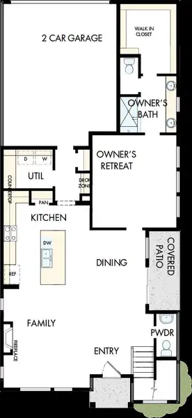 Natural light and open sight lines create a bright, welcoming feel throughout the heart of the home, where the family, dining, and kitchen spaces come together beautifully. The contemporary kitchen will feature Timberlake Painted Harbor cabinets, stunning Marengo Cosentino countertops, and brushed nickel lighting and plumbing fixtures for a clean, timeless look. A spacious presentation island and easy access to the covered patio make this home perfect for both quiet evenings in and hosting friends and family.