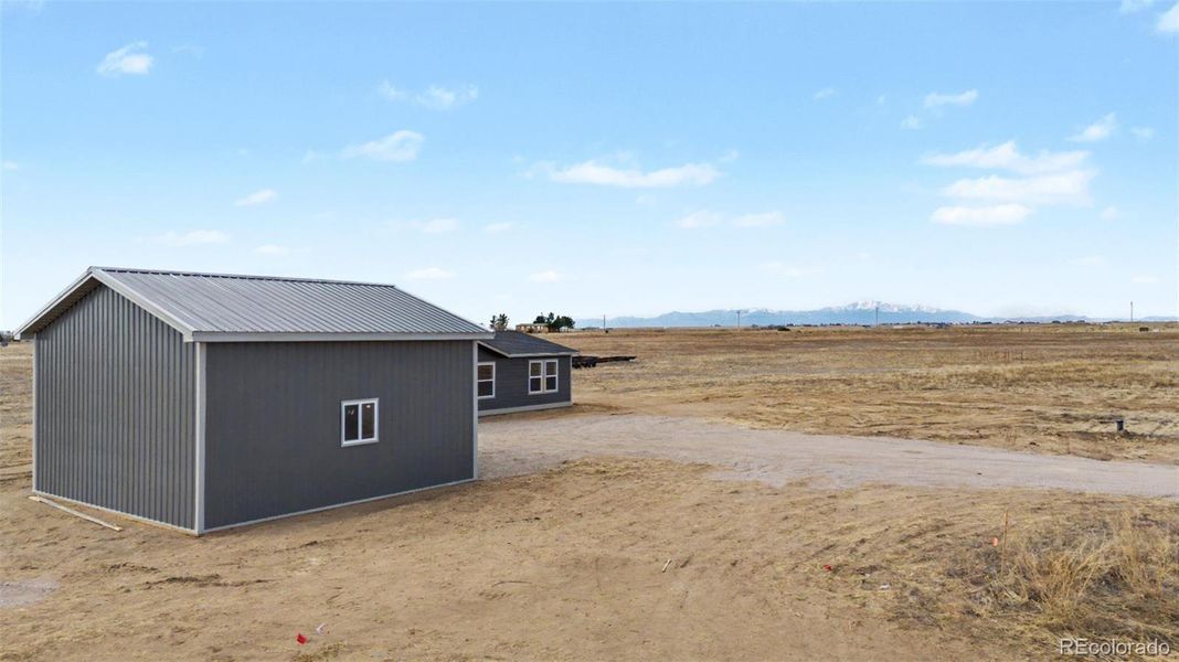 Outside, the setting truly shines. Positioned on a level rural lot with room to breathe, this property offers endless potential — whether you envision outdoor entertaining, additional outbuildings, or simply enjoying quiet evenings under Colorado’s expansive skies. A detached two-car garage provides added convenience and storage.